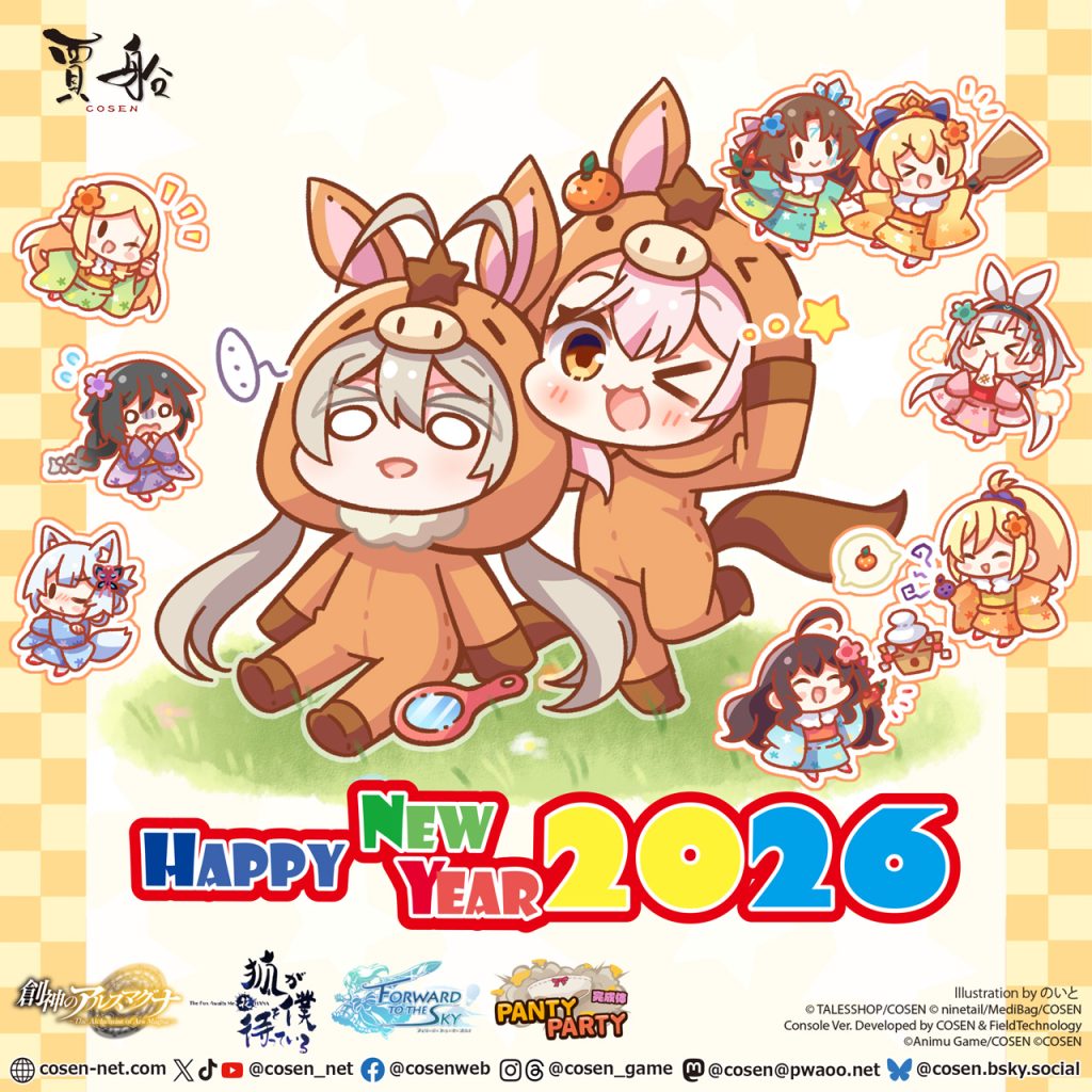 シュアとエンリが馬の着ぐるみを着てくれております。経緯についてはXの年賀状キャンペーンの告知ポストや新春カタログに掲載されている四コマ漫画をご覧ください。