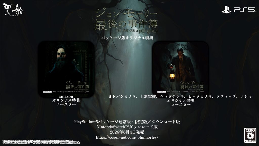 株式会社賈船(本社:東京都港区、代表取締役:西貝 翼)は、PlayStation®5パッケージ通常版・限定版が予約受付中のミステリーアドベンチャーゲーム『ジョン モーリー最後の事件簿』のオリジナル特典を発表しました。